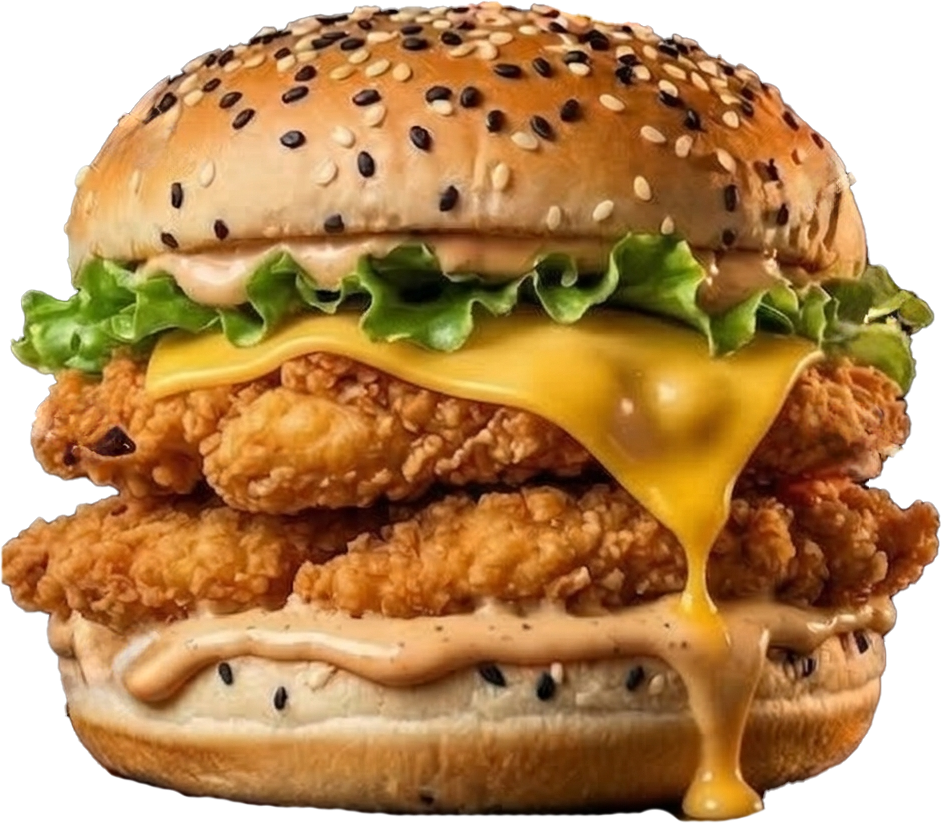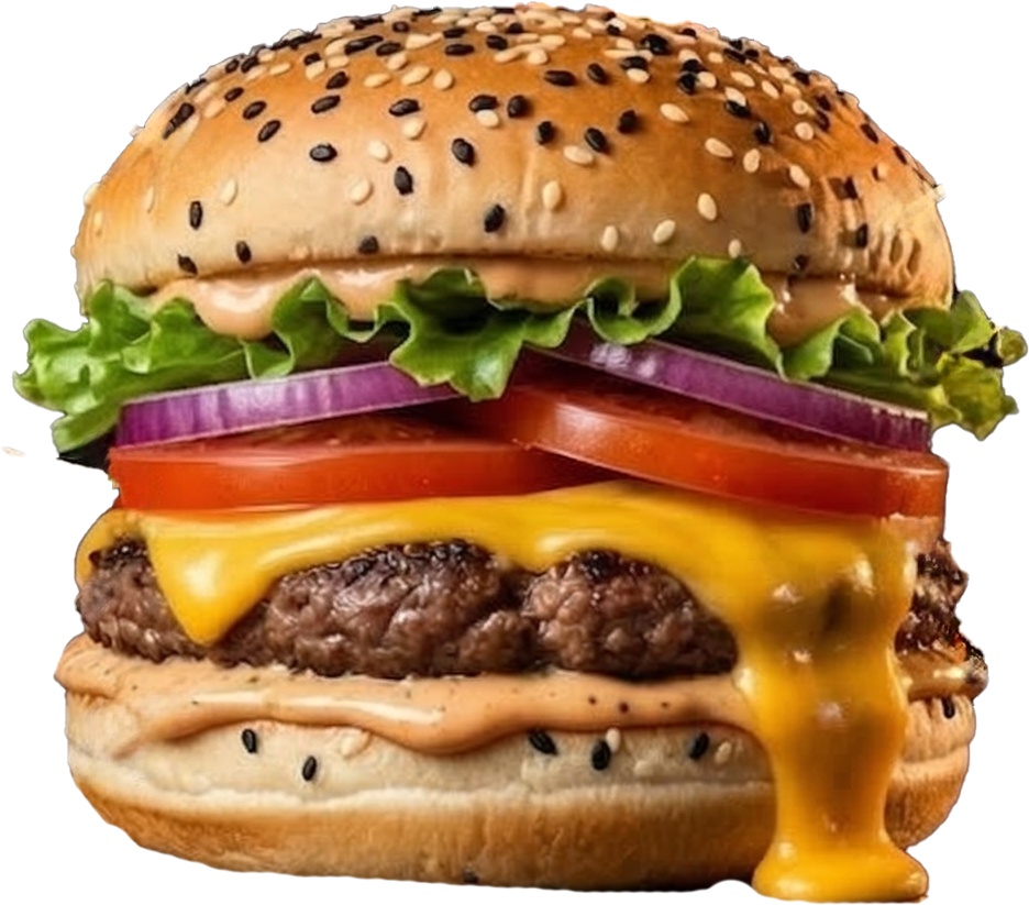Carne,queso americano, queso cheddar, tocino ahumado y aderezo calavera.