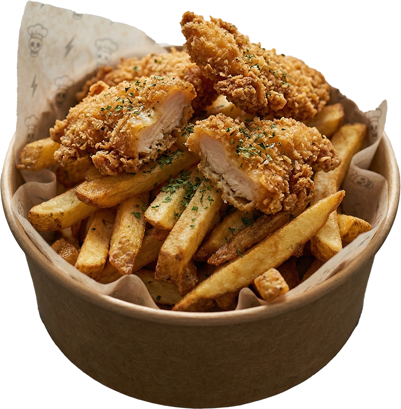 300 g de papas (Francesa, Curly o Gajo) con Tenders